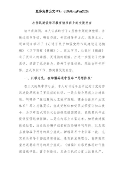 【七哥公文】2025年:在作风建设学习教育读书班上的交流发言+更多免费公文+VX:QiGeGongWen2024+更多免费公文+VX:QiGeGongWen2024