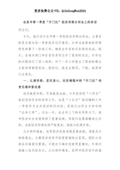 【七哥公文】2025年:在某市第一季度“开门红”经济形势分析会上的讲话+更多免费公文+VX:QiGeGongWen2024+更多免费公文+VX:QiGeGongWen2024
