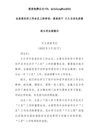 【七哥公文】2025年:在县委农村工作会议上的讲话:真抓实干 久久为功扎实推进乡村全面振兴+更多免费公文+VX:QiGeGongWen2024+更多免费公文+VX:QiGeGongWen2024