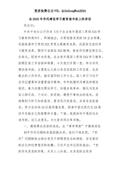 【七哥公文】2025年:在2025年作风建设学习教育读书班上的讲话+更多免费公文+VX:QiGeGongWen2024+更多免费公文+VX:QiGeGongWen2024