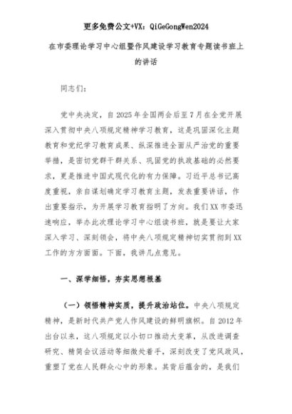 【七哥公文】2025年:在市委理论学习中心组暨作风建设学习教育专题读书班上的讲话+更多免费公文+VX:QiGeGongWen2024+更多免费公文+VX:QiGeGongWen2024