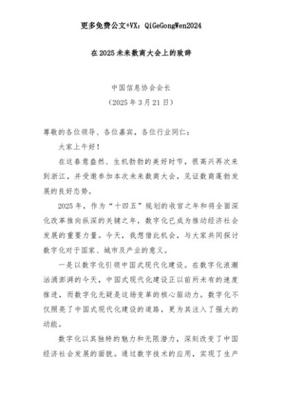 【七哥公文】2025年:在2025未来数商大会上的致辞+更多免费公文+VX:QiGeGongWen2024+更多免费公文+VX:QiGeGongWen2024