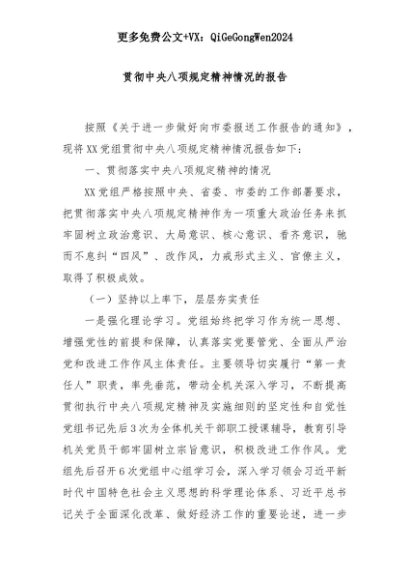 【七哥公文】2025年:贯彻中央八项规定精神情况的报告+更多免费公文+VX:QiGeGongWen2024+更多免费公文+VX:QiGeGongWen2024
