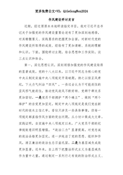 【七哥公文】2025年:作风建设研讨发言+更多免费公文+VX:QiGeGongWen2024+更多免费公文+VX:QiGeGongWen2024