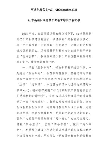 【七哥公文】2025年:Xx市换届以来党员干部教育培训工作汇报+更多免费公文+VX:QiGeGongWen2024+更多免费公文+VX:QiGeGongWen2024