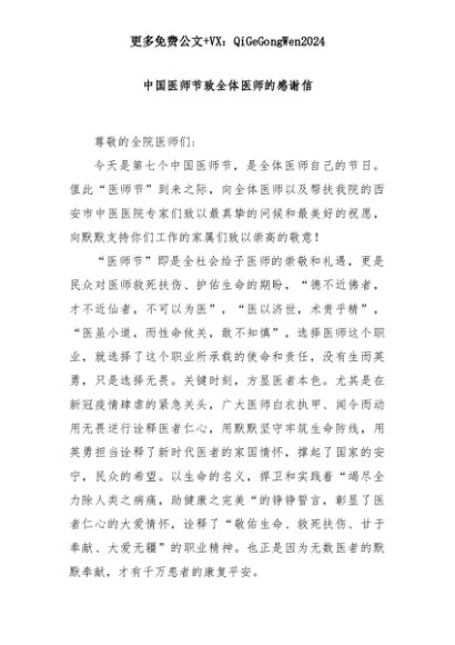 【七哥公文】2025年:中国医师节致全体医师的感谢信+更多免费公文+VX:QiGeGongWen2024+更多免费公文+VX:QiGeGongWen2024