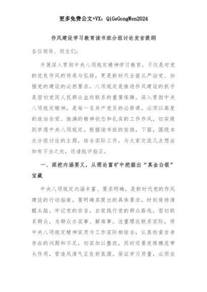 【七哥公文】2025年:作风建设学习教育读书班分组讨论发言提纲+更多免费公文+VX:QiGeGongWen2024+更多免费公文+VX:QiGeGongWen2024