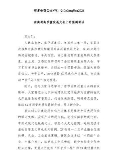 【七哥公文】2025年:在街道高质量发展大会上的强调讲话+更多免费公文+VX:QiGeGongWen2024+更多免费公文+VX:QiGeGongWen2024