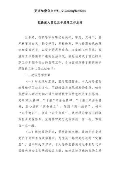 【七哥公文】2025年:拟提拔人员近三年思想工作总结+更多免费公文+VX:QiGeGongWen2024+更多免费公文+VX:QiGeGongWen2024