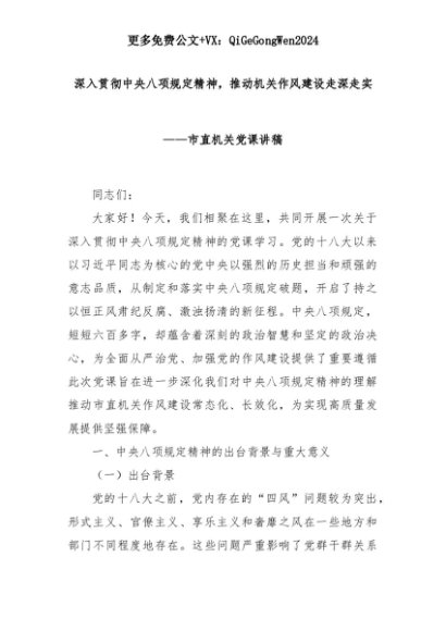 【七哥公文】2025年:深入贯彻中央八项规定精神,推动机关作风建设走深走实——市直机关党课讲稿+更多免费公文+VX:QiGeGongWen2024+更多免费公文+VX:QiGeGongWen2024