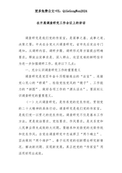 【七哥公文】2025年:在开展调查研究工作会议上的讲话+更多免费公文+VX:QiGeGongWen2024+更多免费公文+VX:QiGeGongWen2024