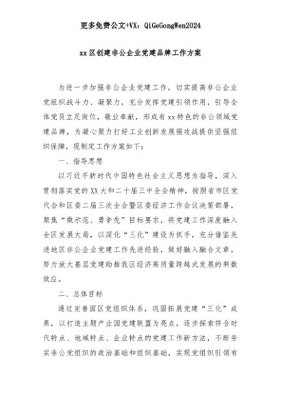 【七哥公文】2025年:xx区创建非公企业党建品牌工作方案+更多免费公文+VX:QiGeGongWen2024+更多免费公文+VX:QiGeGongWen2024