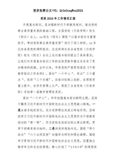 【七哥公文】2025年:党校2024年工作情况汇报+更多免费公文+VX:QiGeGongWen2024+更多免费公文+VX:QiGeGongWen2024