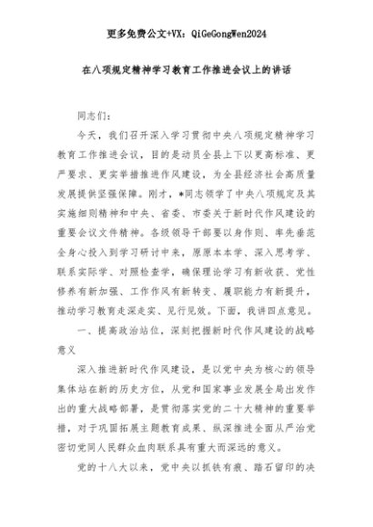 【七哥公文】2025年:在八项规定精神学习教育工作推进会议上的讲话+更多免费公文+VX:QiGeGongWen2024+更多免费公文+VX:QiGeGongWen2024