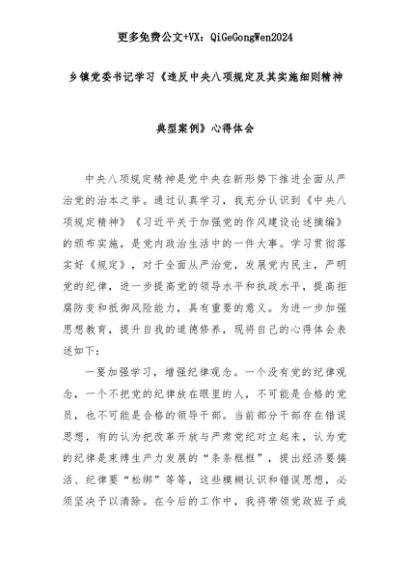 【七哥公文】2025年:乡镇党委书记学习《违反中央八项规定及其实施细则精神典型案例》心得体会+更多免费公文+VX:QiGeGongWen2024+更多免费公文+VX:QiGeGongWen2024