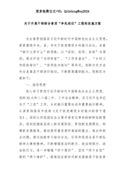【七哥公文】2025年:关于开展干部综合素质“争先进位”工程的实施方案+更多免费公文+VX:QiGeGongWen2024+更多免费公文+VX:QiGeGongWen2024