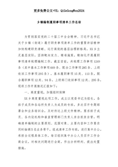 【七哥公文】2025年:乡镇编制履职事项清单工作总结+更多免费公文+VX:QiGeGongWen2024+更多免费公文+VX:QiGeGongWen2024