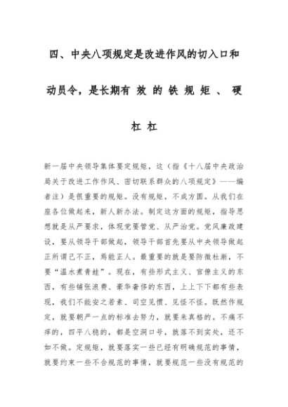 【七哥公文】2025年:四、中央八项规定是改进作风的切入口和动员令,是长期有 效 的 铁 规 矩 、 硬 杠 杠+更多免费公文+VX:QiGeGongWen2024+更多免费公文+VX:QiGeGongWen2024