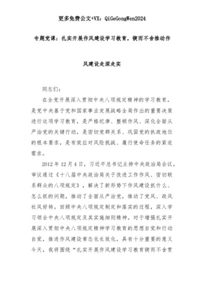 【七哥公文】2025年:专题党课:扎实开展作风建设学习教育,锲而不舍推动作风建设走深走实+更多免费公文+VX:QiGeGongWen2024+更多免费公文+VX:QiGeGongWen2024