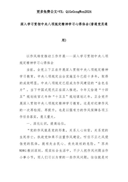【七哥公文】2025年:深入学习贯彻中央八项规定精神学习心得体会(普通党员通用)+更多免费公文+VX:QiGeGongWen2024+更多免费公文+VX:QiGeGongWen2024