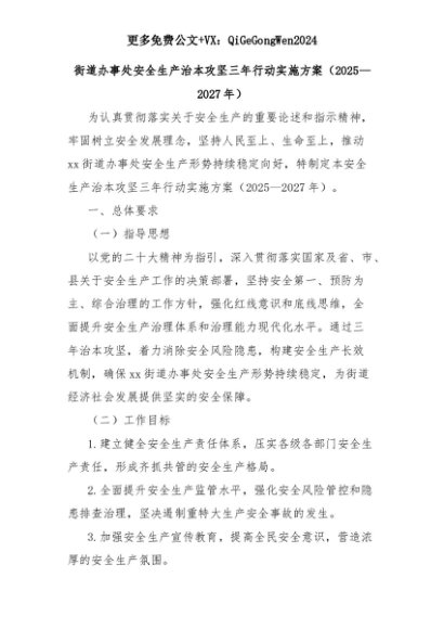 【七哥公文】2025年:街道办事处安全生产治本攻坚三年行动实施方案(2025—2027年)+更多免费公文+VX:QiGeGongWen2024+更多免费公文+VX:QiGeGongWen2024