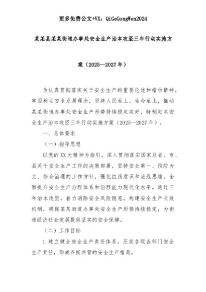 【七哥公文】2025年:某某县某某街道办事处安全生产治本攻坚三年行动实施方案(2025—2027年)+更多免费公文+VX:QiGeGongWen2024+更多免费公文+VX:QiGeGongWen2024