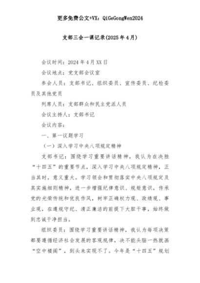 【七哥公文】2025年:支部三会一课记录(2025年4月)+更多免费公文+VX:QiGeGongWen2024+更多免费公文+VX:QiGeGongWen2024