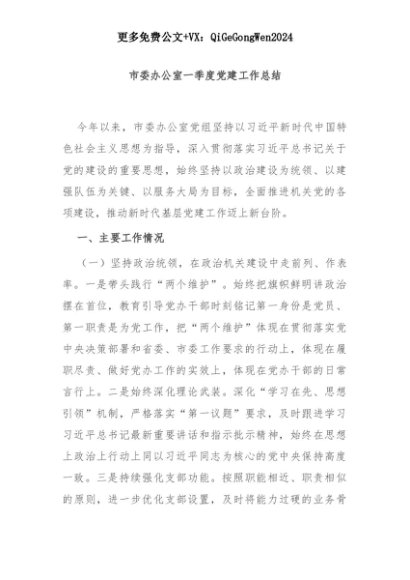 【七哥公文】2025年:市委办公室一季度党建工作总结+更多免费公文+VX:QiGeGongWen2024+更多免费公文+VX:QiGeGongWen2024