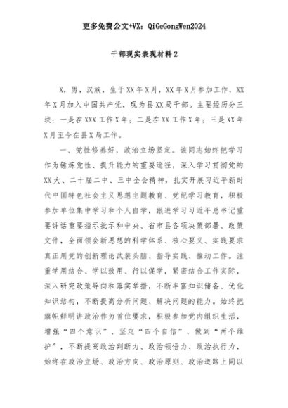 【七哥公文】2025年:干部现实表现材料2+更多免费公文+VX:QiGeGongWen2024+更多免费公文+VX:QiGeGongWen2024