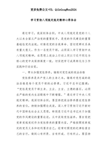 【七哥公文】2025年:学习贯彻八项规定规定精神心得体会+更多免费公文+VX:QiGeGongWen2024+更多免费公文+VX:QiGeGongWen2024