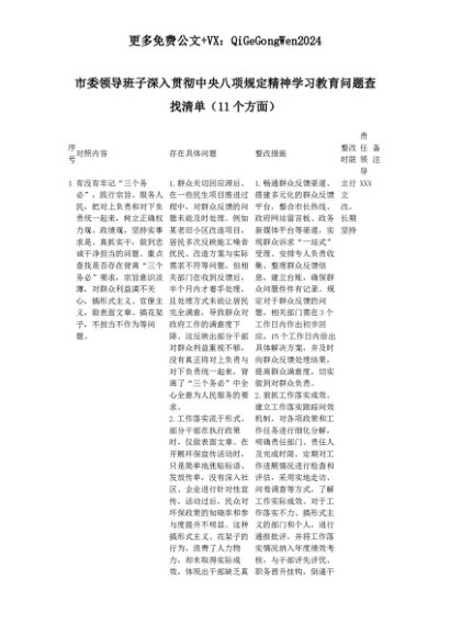 【七哥公文】2025年:市委领导班子深入贯彻中央八项规定精神学习教育问题查找清单(11个方面)+更多免费公文+VX:QiGeGongWen2024+更多免费公文+VX:QiGeGongWen2024