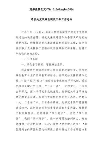 【七哥公文】2025年:局机关党风廉政建设三年工作总结+更多免费公文+VX:QiGeGongWen2024+更多免费公文+VX:QiGeGongWen2024