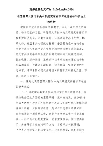【七哥公文】2025年:在开展深入贯彻中央八项规定精神学习教育安排动员会上的讲话+更多免费公文+VX:QiGeGongWen2024+更多免费公文+VX:QiGeGongWen2024
