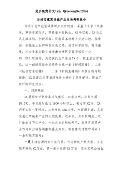 【七哥公文】2025年:县推行蔬菜设施产业发展调研报告+更多免费公文+VX:QiGeGongWen2024+更多免费公文+VX:QiGeGongWen2024