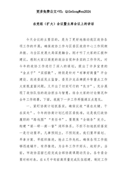 【七哥公文】2025年:在党组(扩大)会议暨主席会议上的讲话+更多免费公文+VX:QiGeGongWen2024+更多免费公文+VX:QiGeGongWen2024