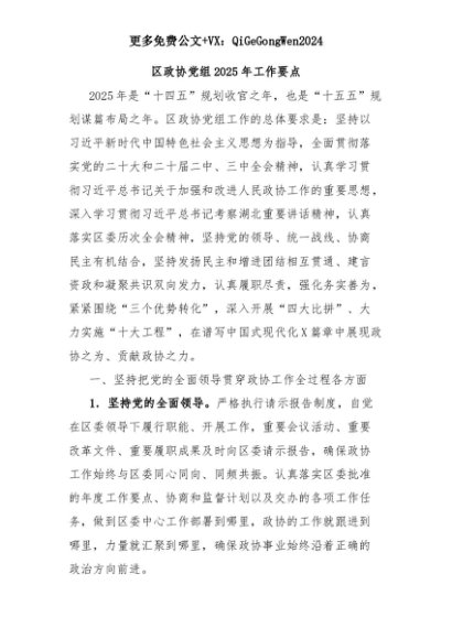 【七哥公文】2025年:区政协党组2025年工作要点+更多免费公文+VX:QiGeGongWen2024+更多免费公文+VX:QiGeGongWen2024