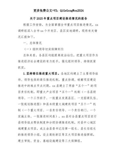 【七哥公文】2025年:关于2025年重点项目建设推进情况的报告+更多免费公文+VX:QiGeGongWen2024+更多免费公文+VX:QiGeGongWen2024
