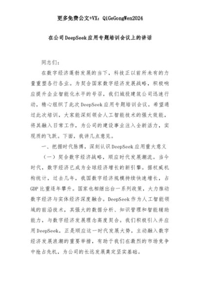 【七哥公文】2025年:在公司DeepSeek应用专题培训会议上的讲话+更多免费公文+VX:QiGeGongWen2024+更多免费公文+VX:QiGeGongWen2024