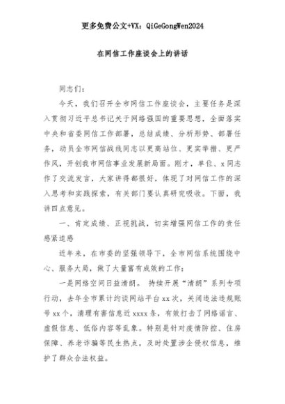 【七哥公文】2025年:在网信工作座谈会上的讲话+更多免费公文+VX:QiGeGongWen2024+更多免费公文+VX:QiGeGongWen2024