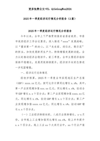 【七哥公文】2025年:(2篇)2025年一季度经济运行情况分析报告+更多免费公文+VX:QiGeGongWen2024+更多免费公文+VX:QiGeGongWen2024
