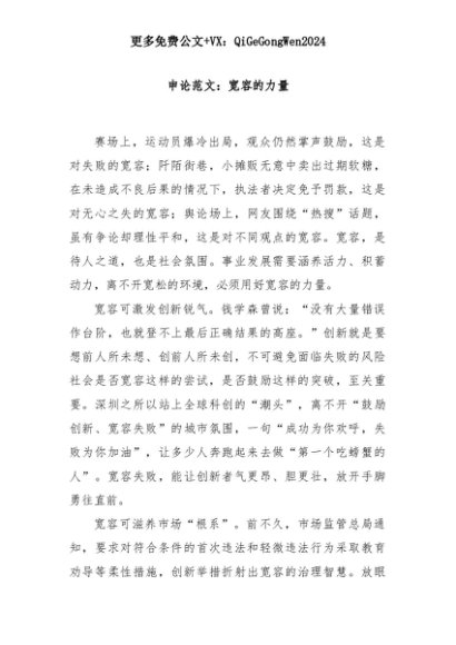【七哥公文】2025年:申论范文:宽容的力量+更多免费公文+VX:QiGeGongWen2024+更多免费公文+VX:QiGeGongWen2024