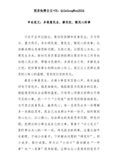【七哥公文】2025年:申论范文:多做惠民生、解民忧、暖民心的事+更多免费公文+VX:QiGeGongWen2024+更多免费公文+VX:QiGeGongWen2024