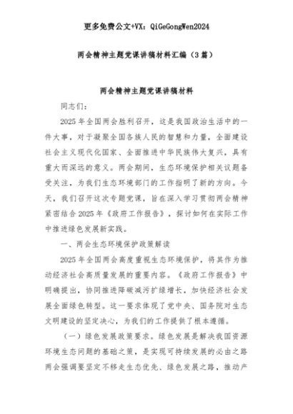 【七哥公文】2025年:(3篇)两会精神主题党课讲稿材料汇编+更多免费公文+VX:QiGeGongWen2024+更多免费公文+VX:QiGeGongWen2024