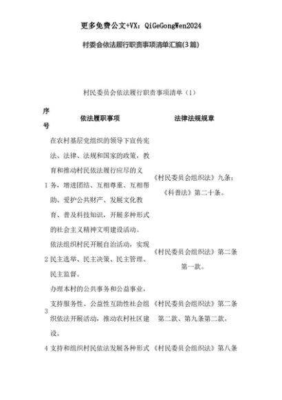 【七哥公文】2025年:(3篇)村委会依法履行职责事项清单汇编+更多免费公文+VX:QiGeGongWen2024+更多免费公文+VX:QiGeGongWen2024