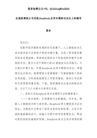 【七哥公文】2025年:在城投建筑公司系统DeepSeek应用专题培训会议上的辅导报告+更多免费公文+VX:QiGeGongWen2024+更多免费公文+VX:QiGeGongWen2024