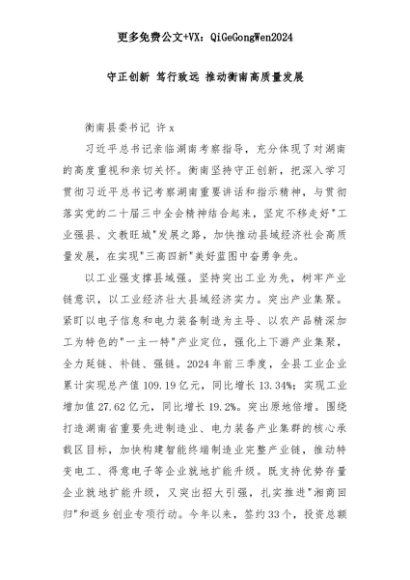 【七哥公文】2025年:守正创新 笃行致远 推动衡南高质量发展+更多免费公文+VX:QiGeGongWen2024+更多免费公文+VX:QiGeGongWen2024
