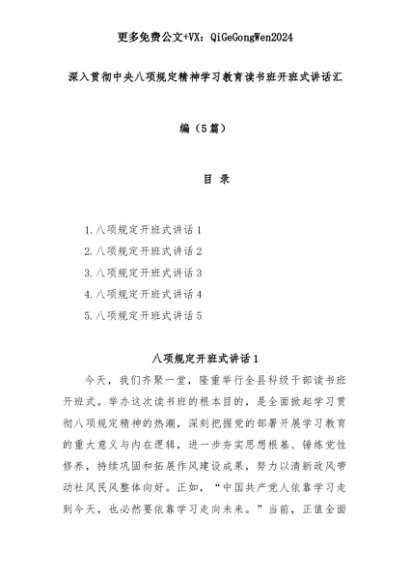 【七哥公文】2025年:(5篇)深入贯彻中央八项规定精神学习教育读书班开班式讲话汇编+更多免费公文+VX:QiGeGongWen2024+更多免费公文+VX:QiGeGongWen2024