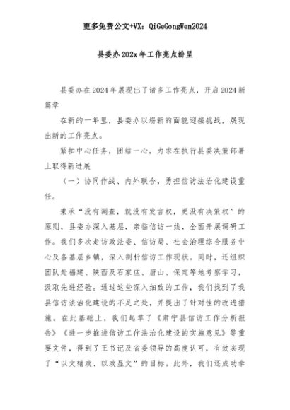 【七哥公文】2025年:县委办202x年工作亮点纷呈+更多免费公文+VX:QiGeGongWen2024+更多免费公文+VX:QiGeGongWen2024