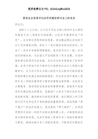 【七哥公文】2025年:国有企业党委书记在作风建设研讨会上的发言+更多免费公文+VX:QiGeGongWen2024+更多免费公文+VX:QiGeGongWen2024