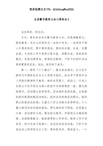 【七哥公文】2025年:全县警示教育大会心得体会2+更多免费公文+VX:QiGeGongWen2024+更多免费公文+VX:QiGeGongWen2024